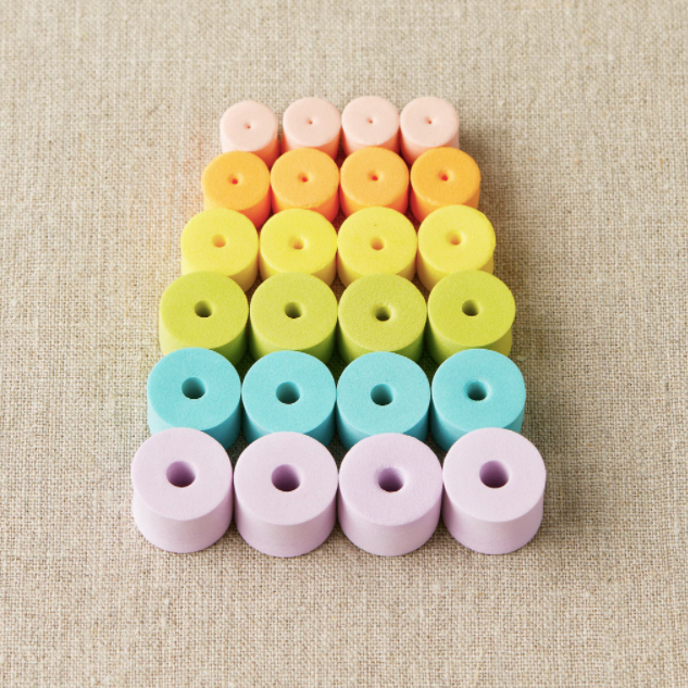 Soft & flexible cylinders made of durable EVA foam, in a variety of sizes with an opening in the middle, that accommodates everything from size 0 (or the cord of an interchangeable needle set) to a US 15.