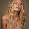 Bezel set in rough-cut sterling silver or bronze, each semi precious stone has a symbolic meaning. The organic bezel design is framed by an oxidized circle to highlight the color and dimension of the stone.