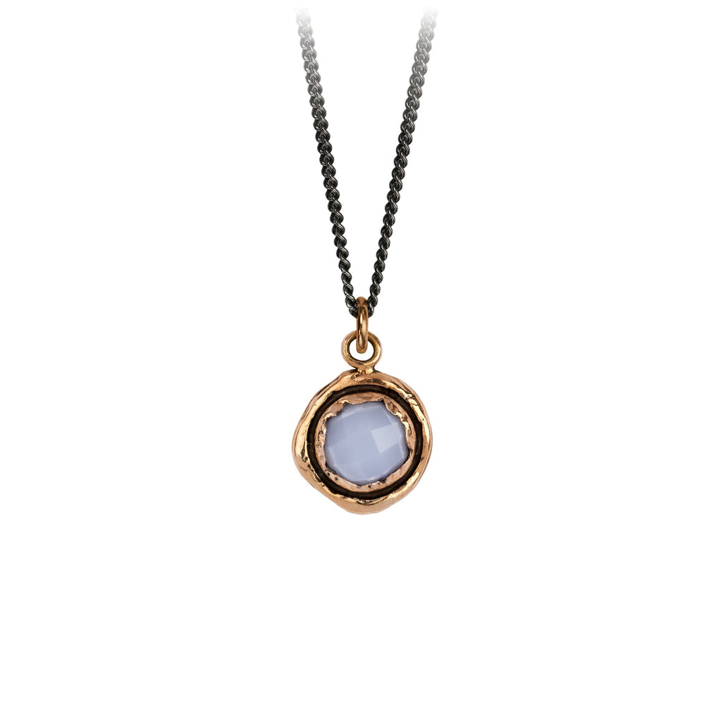 - Sterling silver or bronze talisman on a sterling silver curb chain with a Pyrrha branded quality tag.