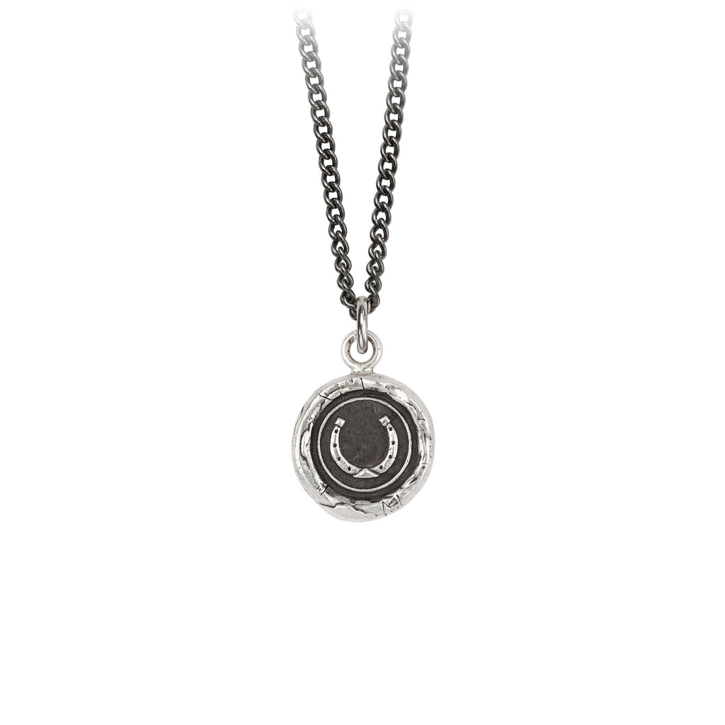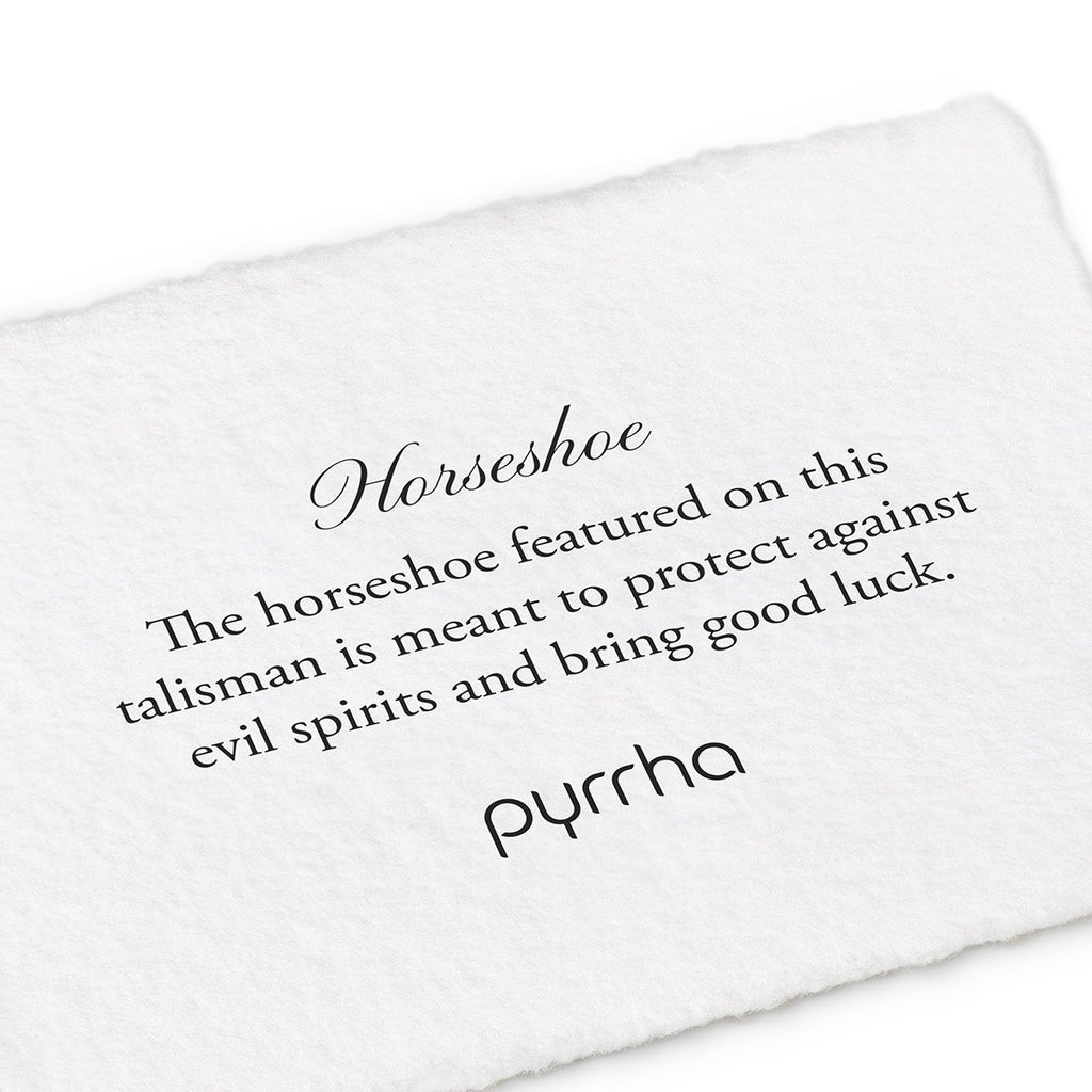 The horseshoe featured on this talisman is meant to protect against evil spirits and bring good luck.