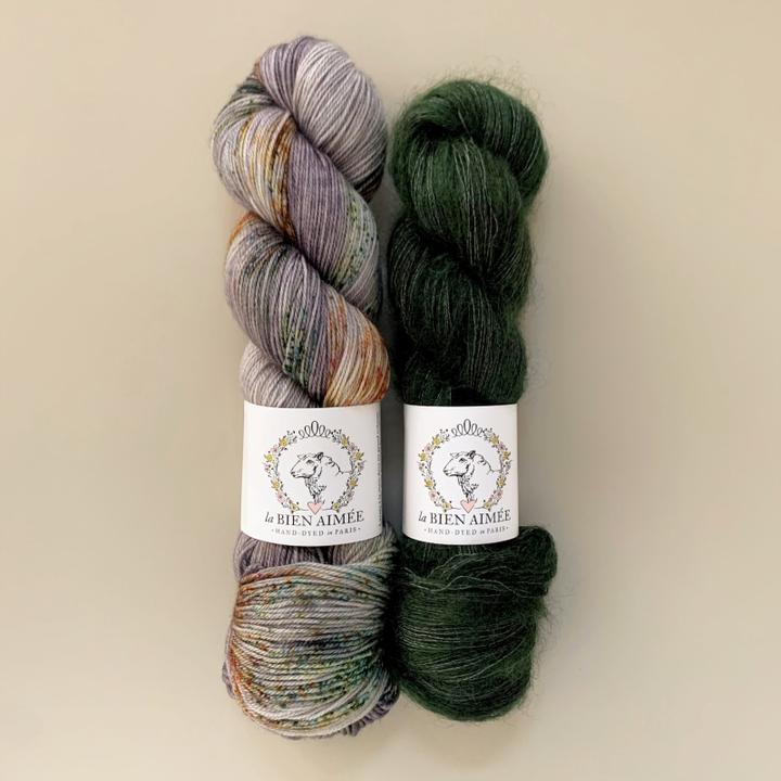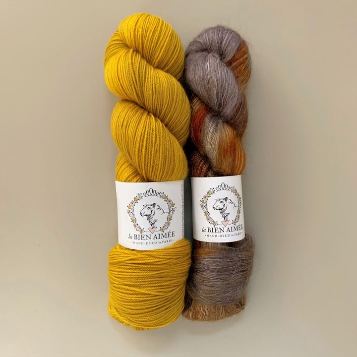 For these kits, we have put together one skein of Merino Singles and one skein of Mohair Silk.