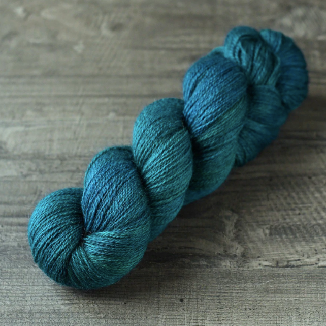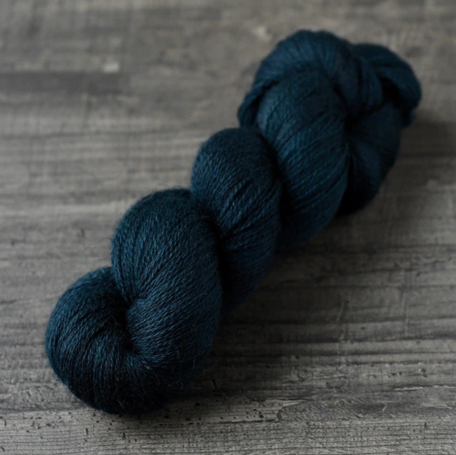Introducing Helix, a light and lofty yarn base, exclusively spun for La Bien Aimée. This non superwash, light fingering weight yarn combines high-quality Falkland Merino with the unique Gotland wool fiber. Gotland wool is known for its wonderful luster and slight halo, making it reminiscent of mohair. This light-grey fiber mixed with the bright white merino gives the Helix yarn an incredible sheen and depth of color not possible on our other yarn bases.