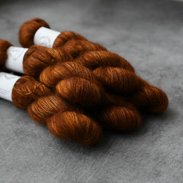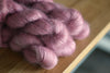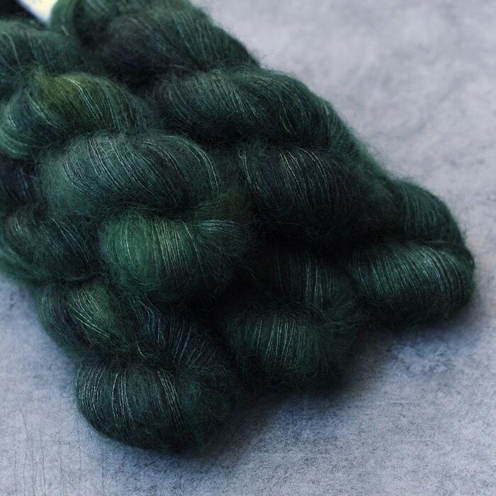 La Bien Aimée Mohair Silk is a soft and luxurious blend of mohair and Mulberry silk. A lace weight with almost 55O yards, it adds a lovely halo to any garment or accessory, while staying light and warm at the same time. It is perfect mixed with our other merino bases, such as Singles in Elton by Joji Locatelli, or Love Note by Tin Can Knits, or held together with Helix, like in Jennifer Steingass' Meadow Moon or Veera Valimaki's Old School sweater. Add a strand of mohair to a DK weight hat or a pair of fingerless mitts and you instantly have a super cozy winter accessory! Mohair also adds great texture to any shawl, either held together with your yarn, or striped in for instant lightness.